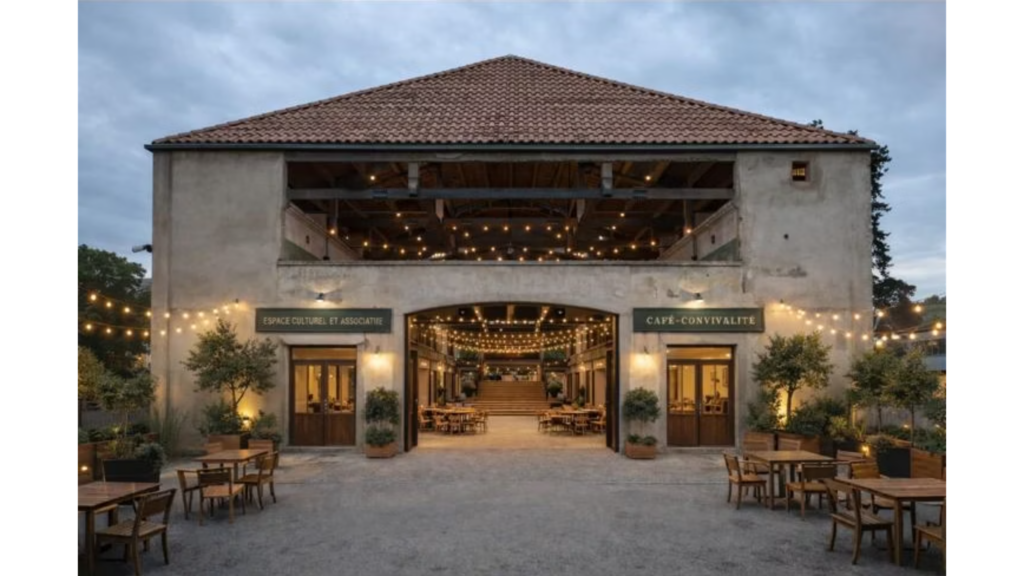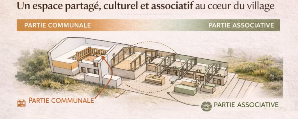 🍺 Lieu de convivialité (Table pique nique & cuisine ouverte sur l’accueil et la salle des fêtes avec espaces verts)